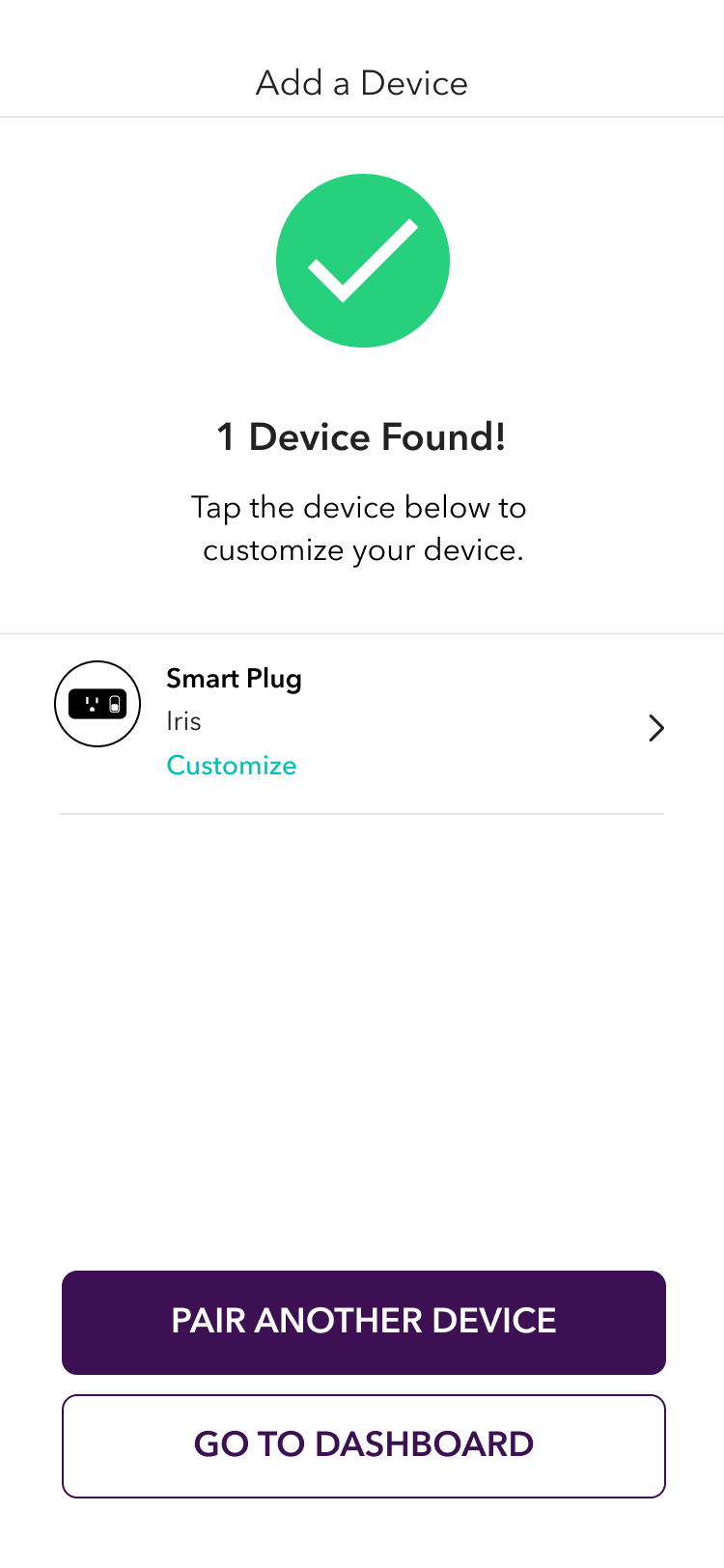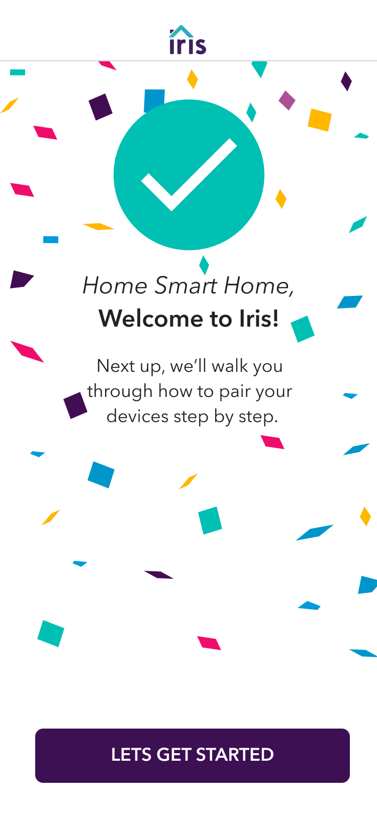Iris' screens for the dashboard, adding a device, and device pairing.